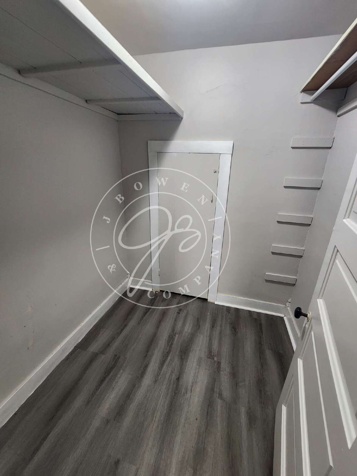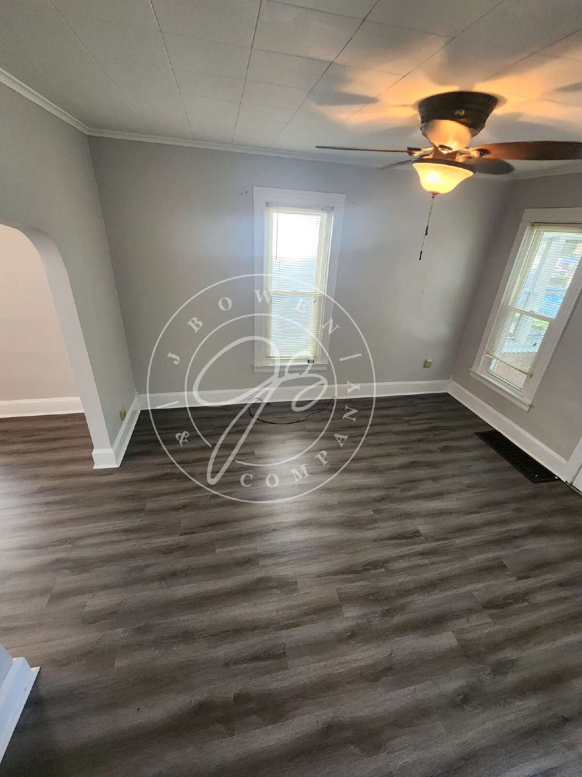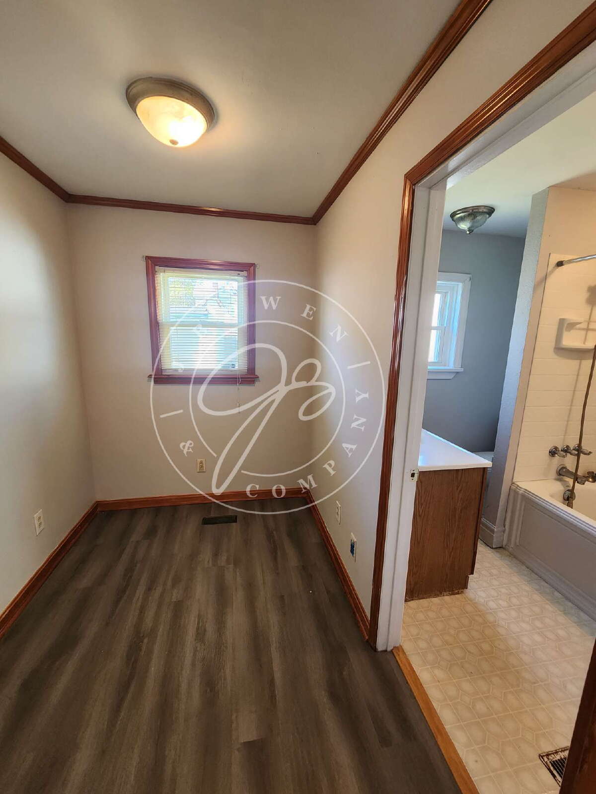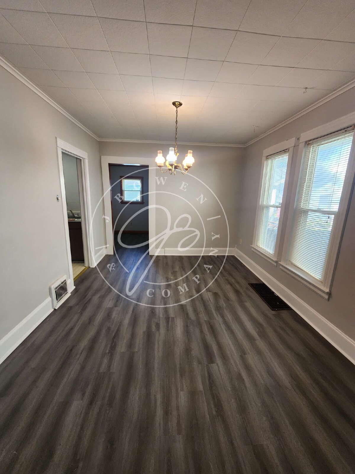 Spacious 3-bed/1-bath home with a first-floor bedroom and bath, updated vinyl plank flooring, and an enclosed 3-season front porch. (Please note if using first floor as 3rd bedroom you must walk through that room to get to the bathroom) The large, uniquely shaped living room offers flexible furniture layouts, plus a separate dining room and a large eat-in kitchen (stove and dishwasher included; dryer as-is). A full unfinished basement includes laundry. The main-level bath is located off a bonus room/possible 3rd bedroom (bath access through bedroom). Upstairs features two generous bedrooms, a large walk-in storage closet/small bonus nook, and built-in shelving with a desk in one bedroom. Ceiling fans in most rooms. Outside, enjoy a fenced backyard and a garage off the rear alley with opener. Central air (as-is). Tenant pays all utilities and handles lawn care and snow removal. Applicants must gross at least 2.5× the rent, provide verifiable income, and have no recent evictions. Information deemed reliable but not guaranteed. Brokered by J Bowen & Company. Property is NOT managed by J Bowen & Company.