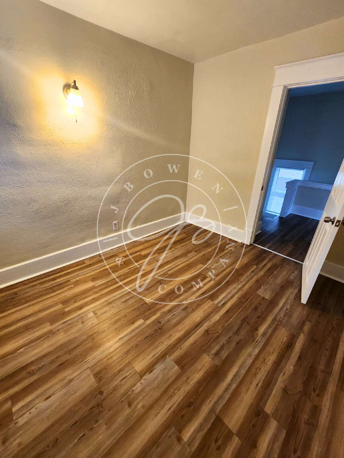 Step inside to find brand-new vinyl plank flooring throughout, fresh paint, new light fixtures, and an updated bathroom. The first floor offers a large, light-filled living room that flows into an open dining room, complete with a built-in hutch with cabinet storage. Sliding patio doors lead directly to the deck, making indoor-outdoor living a breeze.