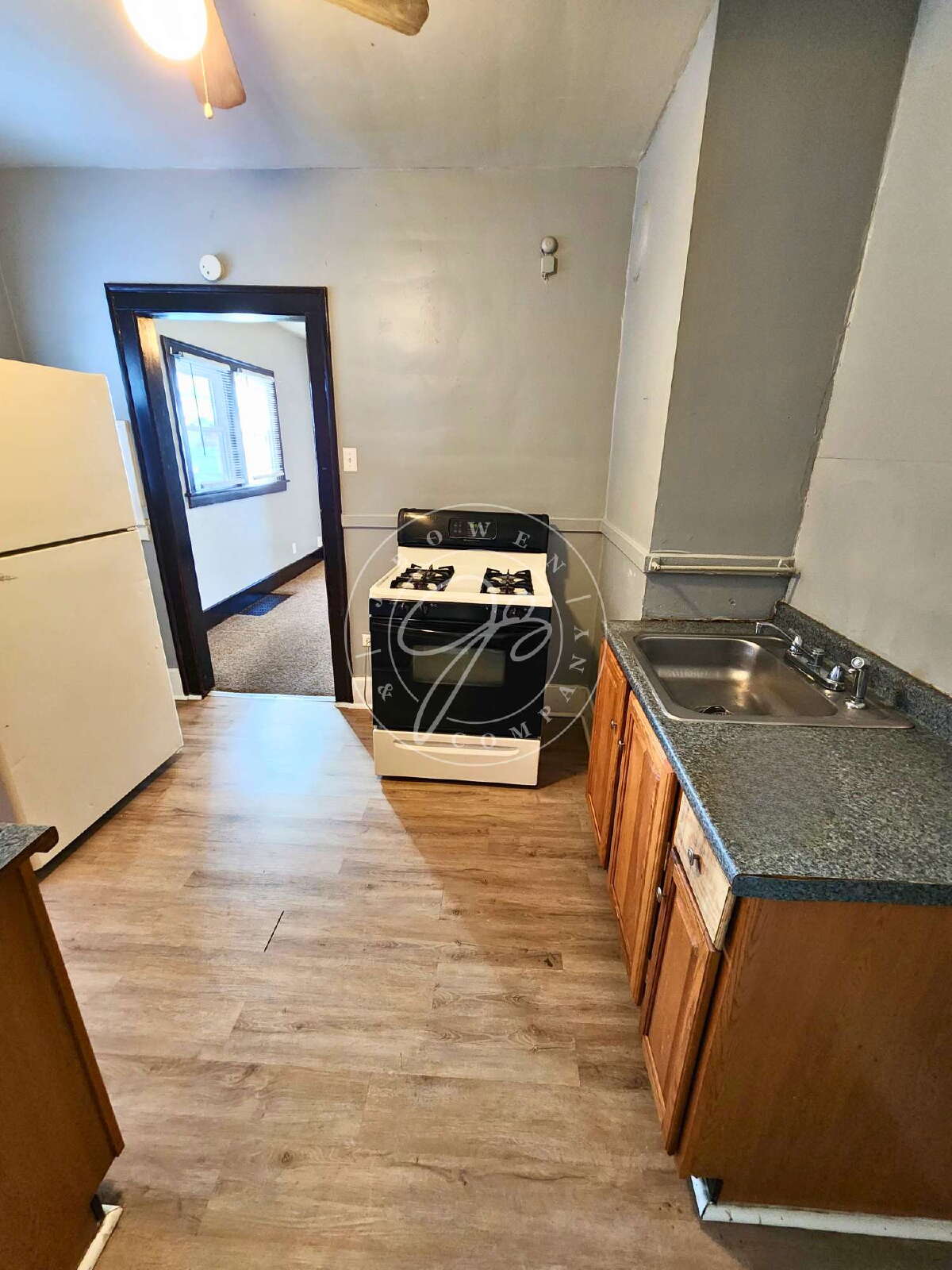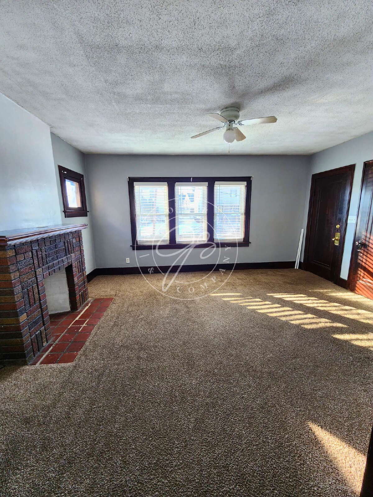 Move-in ready lower unit featuring 2 bedrooms and 1 bathroom, offering generous space and classic charm. This home includes a spacious living room with a decorative fireplace, creating a warm and inviting focal point.
